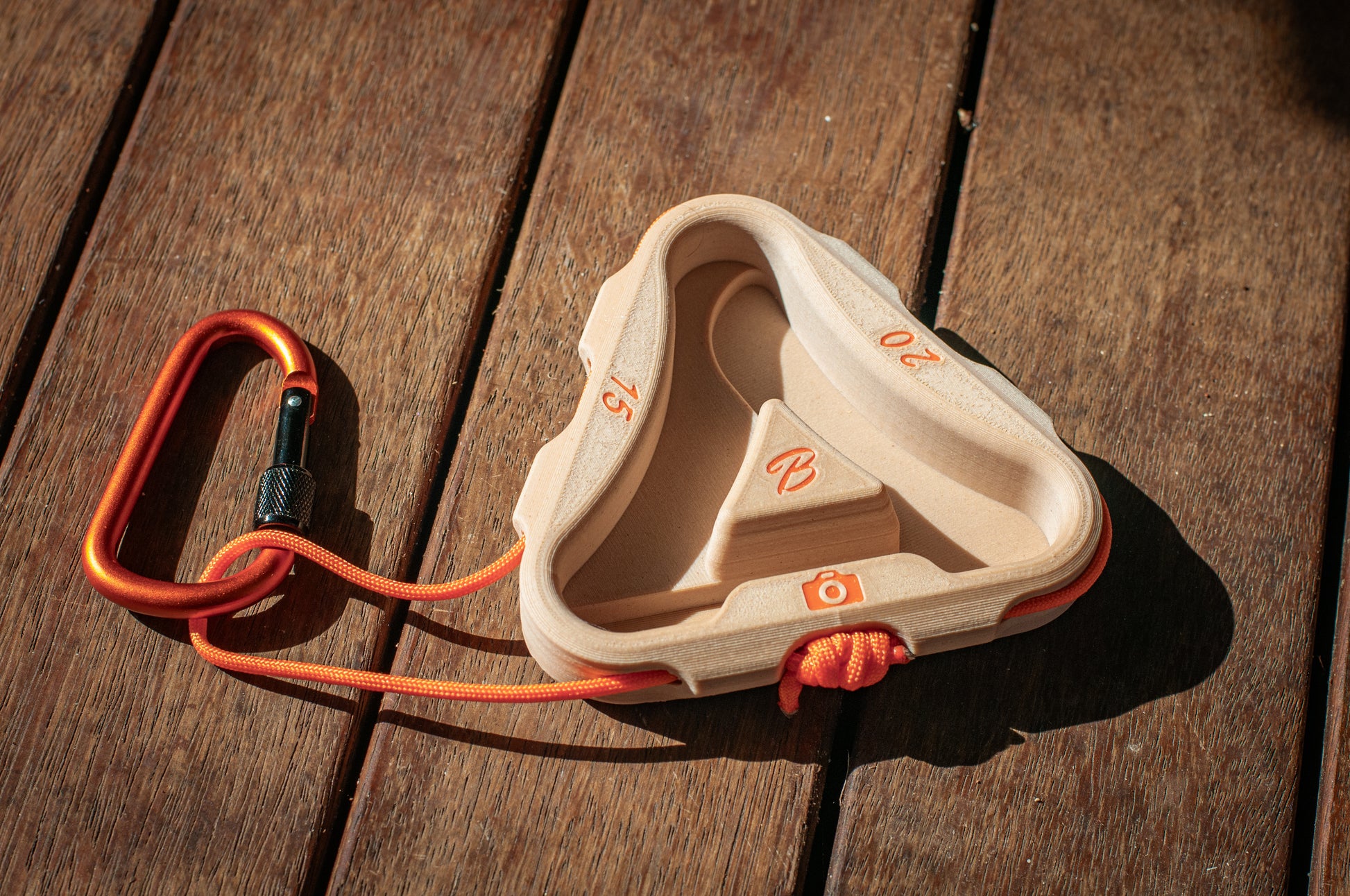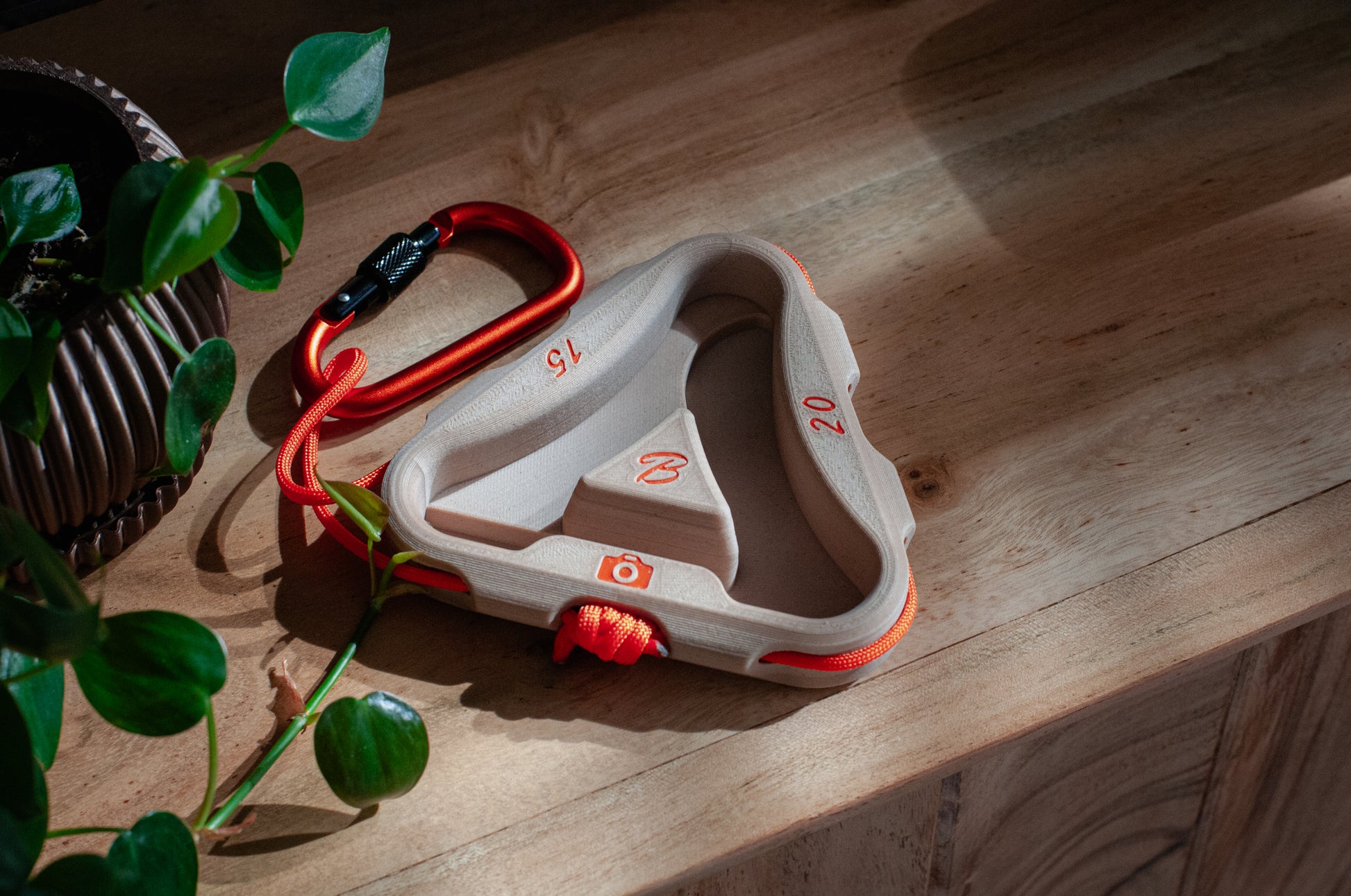 Whether you're at the crag, the gym, or your parent's basement, the Trihangle has you covered. It's a portable hang board and phone holder in one, designed to help you warm up properly and film your projects.